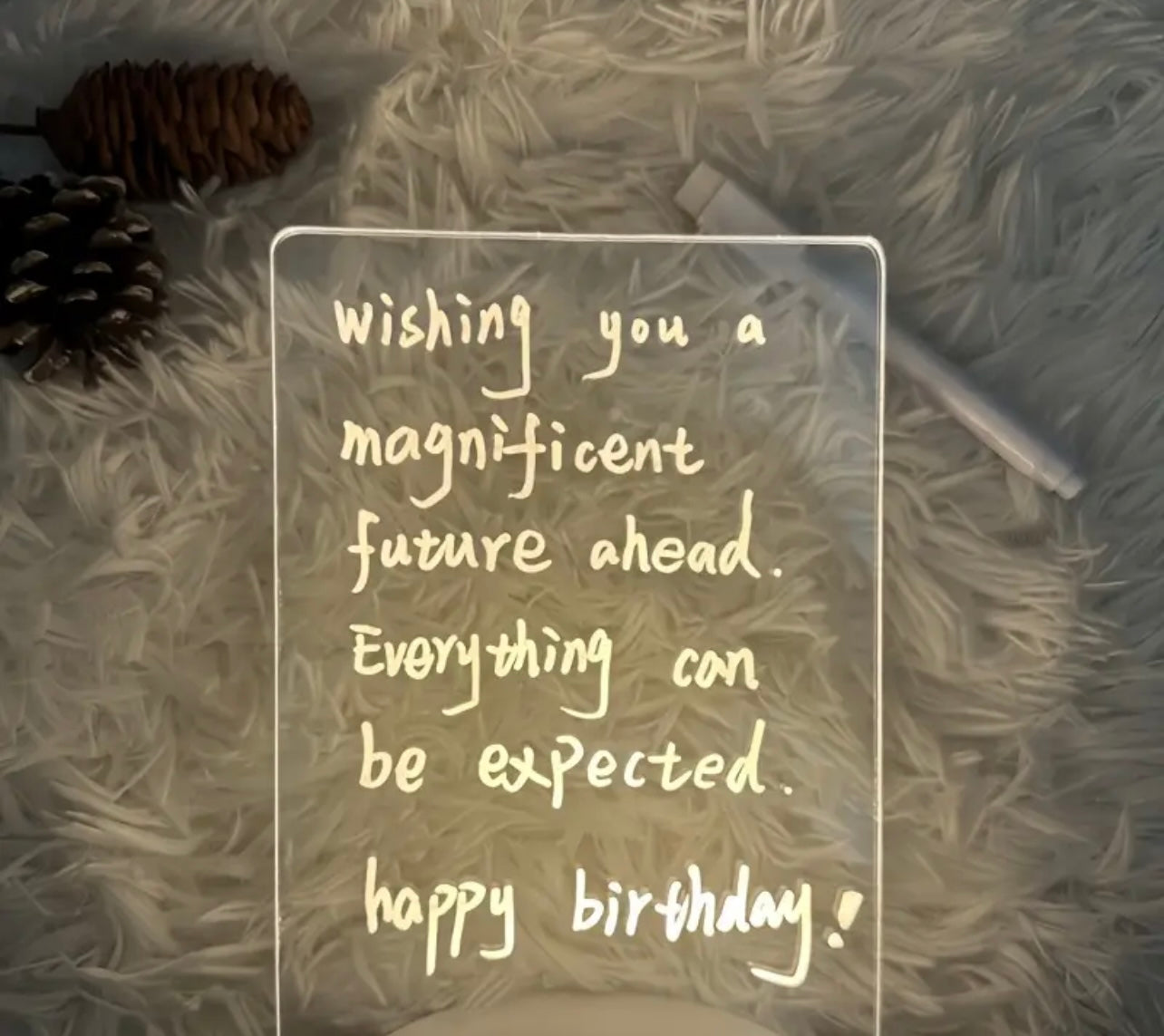 Illuminate your nights with our LED night light that also doubles as an erasable board. Write notes, reminders, or create fun drawings with the included pen. The perfect multi-functional solution for your home.